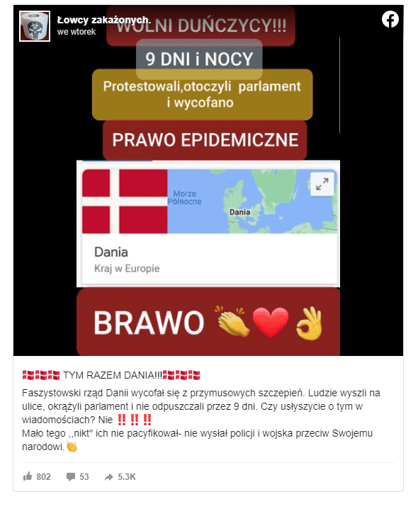 Informację o tym, że rząd Danii wycofał się z przymusowych szczepień uznajemy za fałszywą, ponieważ obowiązkowe szczepienia dla wszystkich obywateli Danii nigdy nie były proponowane. Ustawa, do której odnosi się post, nawet po wejściu w życie nie wprowadzałaby powszechnego obowiązku szczepień.