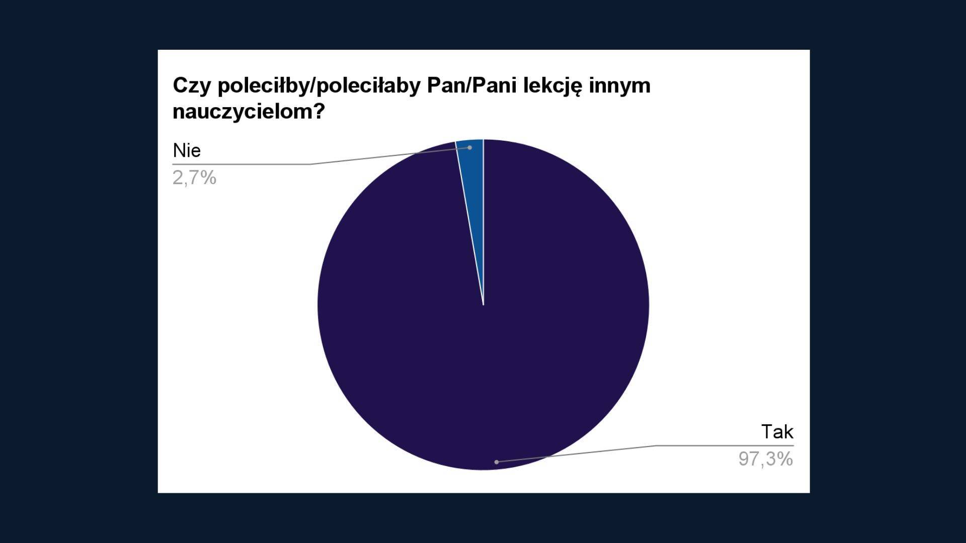 Aż 97,3% nauczycieli, którzy wypełnili ankietę, poleciłoby lekcję innym nauczycielom ? jest nam niezmiernie miło!
