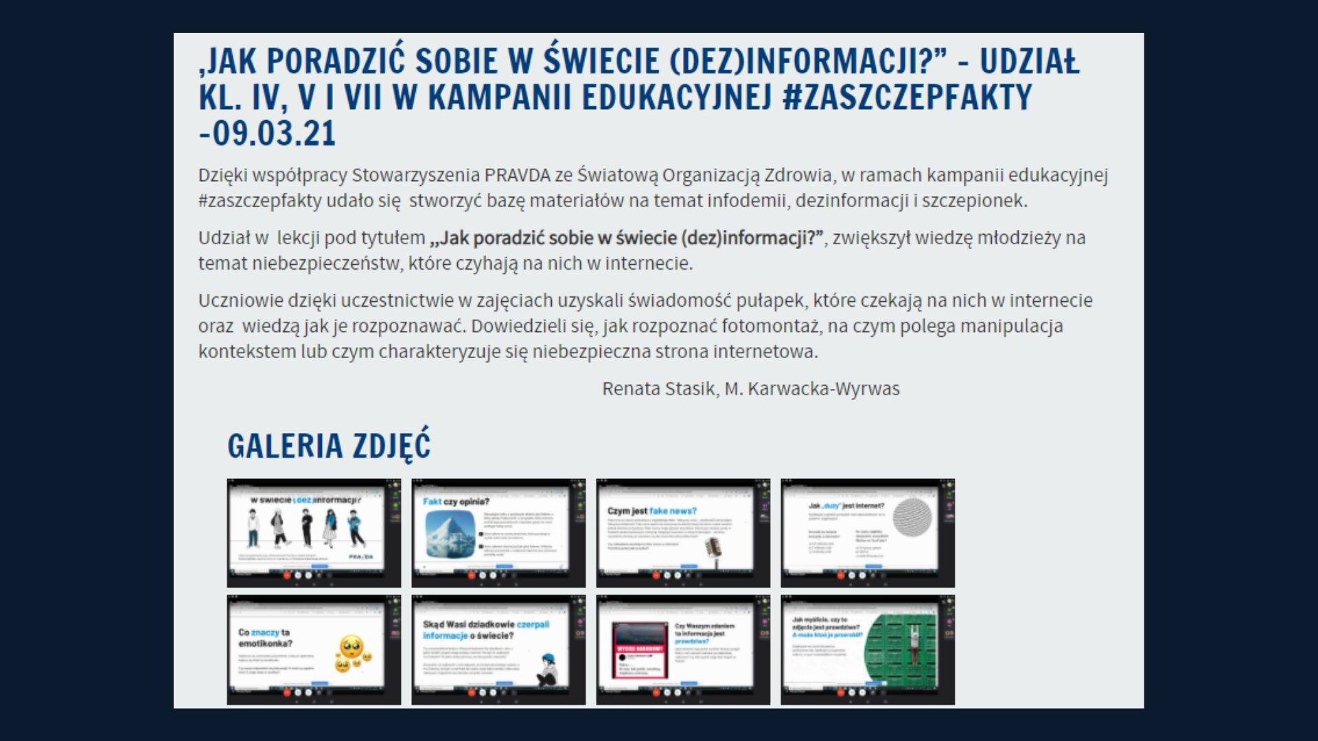 W ramach współpracy ze Światową Organizacją Zdrowia przeprowadziliśmy kampanię #zaszczepfakty, której częścią była lekcja ? ?Jak poradzić sobie w świecie (dez)informacji?? ? skierowana do uczniów szkół podstawowych.