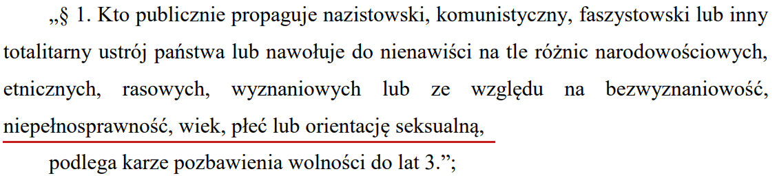 Najbardziej kontrowersyjną częścią projektu wydaje się być nowelizacja art. 256 § 1 k.k. Dotyczy ona tzw. mowy nienawiści (ang. hate speech):